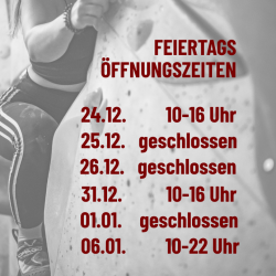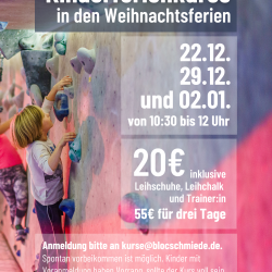 Kindern unter 12 Jahren ist das Klettern nur bei einer 1:1 Betreuung durch eine volljährige, bevollmächtigte Begleitperson gestattet.